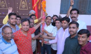 रुड़की।श्री रामलीला समिति रजि०,बीटी गंज रुड़की का 106-वां ध्वजारोहण हनुमान जी की पताका के साथ बड़ी ही धूमधाम के साथ बैंडबाजों एवं धार्मिक झांकियों के साथ बबलू पंडित द्वारा विधि-विधान से पूजा-अर्चना कर समिति अध्यक्ष सुबोध गुप्ता द्वारा एवं समिति पदाधिकारियों के द्वारा बारी-बारी से ध्वज को अपने कंधे पर लेकर रुड़की नगरवासियों ने रक्षा सूत्र बांधकर ध्वज को गंगा जी में स्नान करा कर पूजा अर्चना व आरती कर बीटी गंज रंगमंच स्थल पर स्थापित किया।अतिथियों में राज्य मंत्री शोभाराम प्रजापति,भाजपा नेता ललित मोहन अग्रवाल, युवा भाजपा नेता अक्षय प्रताप, वरिष्ठ समाजसेवी एवं फोनिक्स यूनिवर्सिटी के चेयरमैन ई०चैरब जैन,सतीश सैनी व अरविंद गौतम ने विधि-विधान के साथ ध्वज स्थापित किया।शोभायात्रा में सदस्य मनोज अग्रवाल,महामंत्री सौरभ सिंघल,विशाल गुप्ता,प्रदीप परुथी,नवनीत गर्ग,दीपक शुक्ला,शशिकांत अग्रवाल,अमन अग्रवाल,अभिषेक मित्तल,शिवम अग्रवाल,निखिल तायल,शेखर सिंघल,शौर्य प्रताप,पीयूष जैन,आदित्य शर्मा,नमन गोयल,अनिकेत गर्ग,सुमित चौहान,वीरेंद्र गोयल,राकेश कश्यप,राजन झांकी,हिमांशु शर्मा,रोहन ग्रोवर,अजेस अग्रवाल,ऋतिक राणा,वरुण ठकराल,सूरज नेगी,टोनी गंगाभक्त,नितिन गोयल,विपिन सिंघल,देशबंधु गुप्ता,पारस,गौरव मेहंदीरत्ता,संयम अग्रवाल,संजय कश्यप,आशीष अग्रवाल,अशोक आर्य,डॉ०टेक वल्लभ आदि प्रमुख रूप से मौजूद रहे।